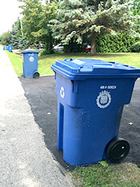 - Leave at least 60 cm (2 feet) of space between the blue bin and the brown bin for organic waste if both bins are out.